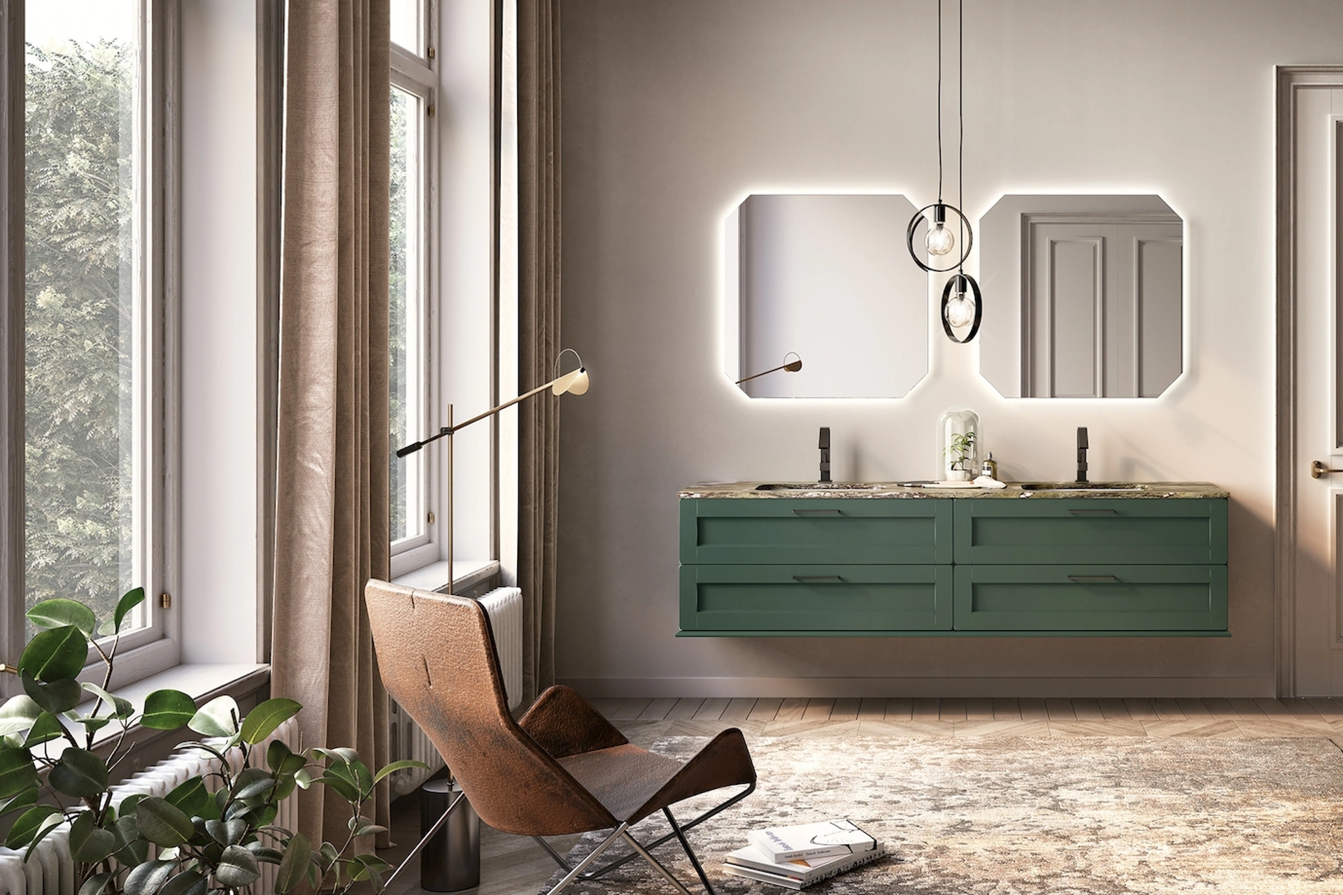 mobili bagno sospesi in laccato opaco del marchio Puntotre: clicca e scopri l'arredo bagno moderno Accademia 31 per il bagno di casa.