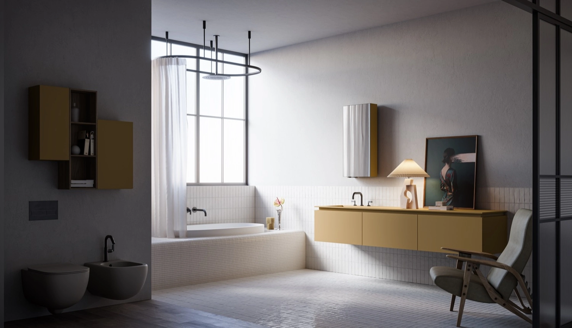 mobili bagno sospesi Alto 14 di Puntotre: scopri l'Arredo Bagno in polimerico moderno e arreda la stanza del benessere.