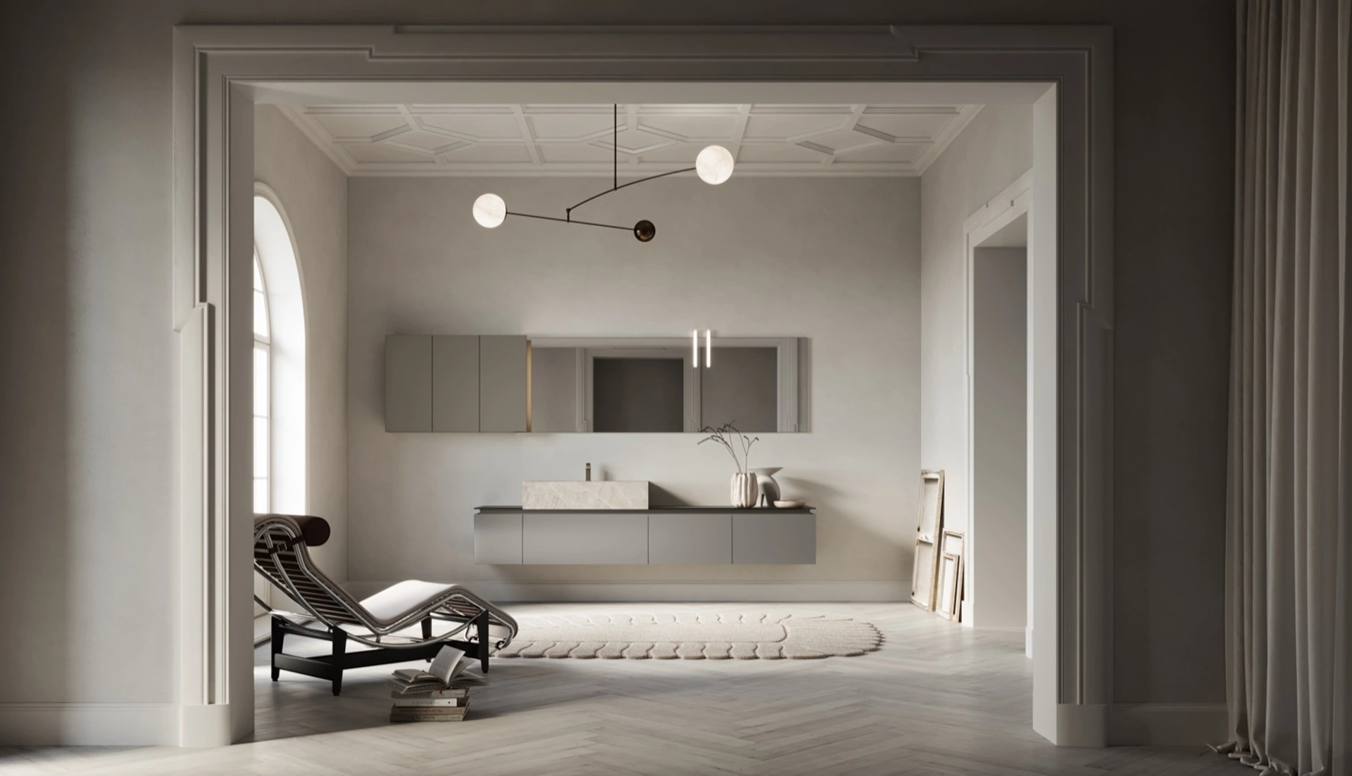 Mobile da Bagno Alto 17 di Puntotre: clicca e scopri di più su mobili bagno sospesi in polimerico e elementi accessori della firma.