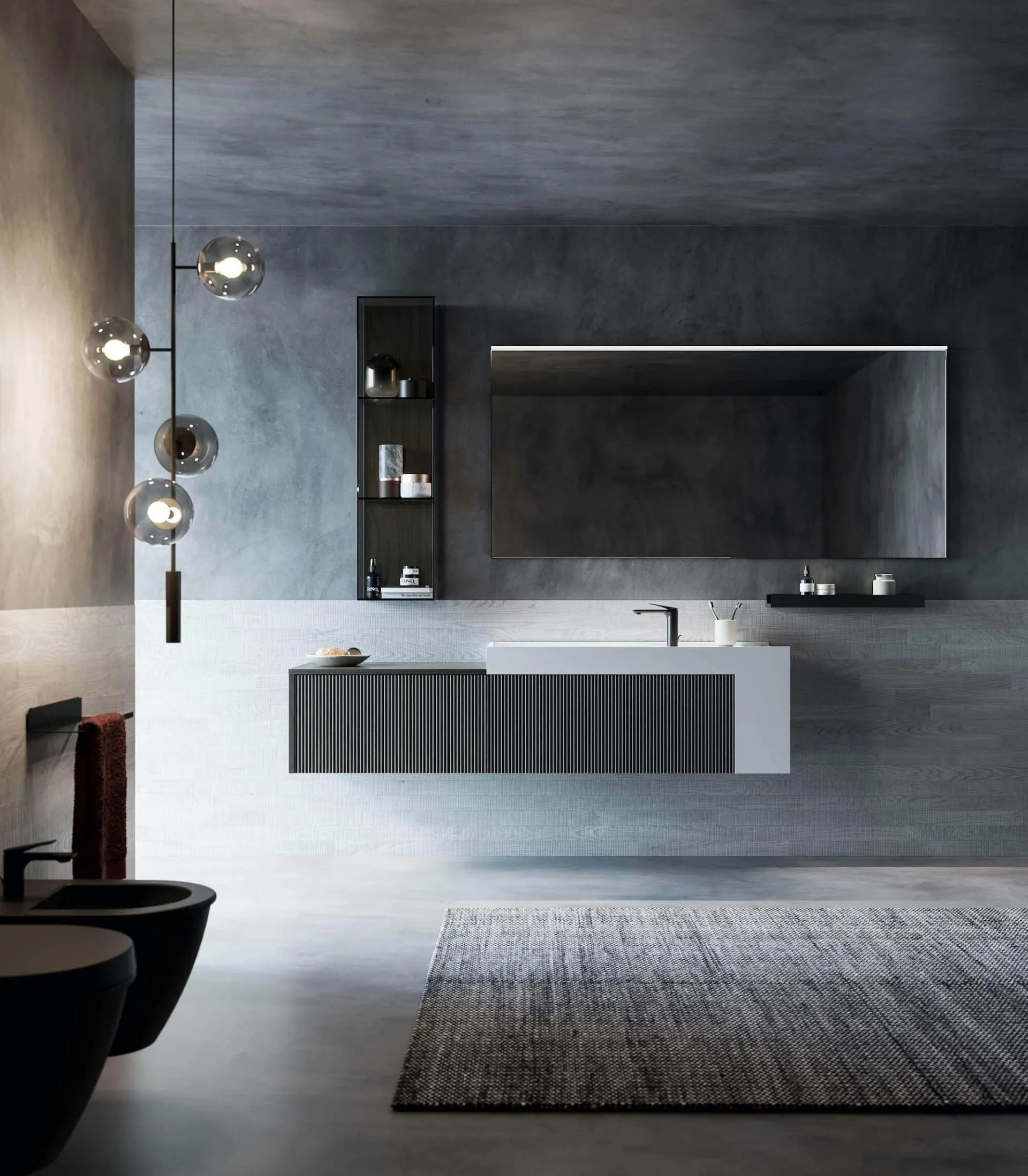 Mobili bagno sospesi in polimerico della firma Puntotre: clicca e scopri l'arredo bagno design Vertigo 04 per il tuo bagno.