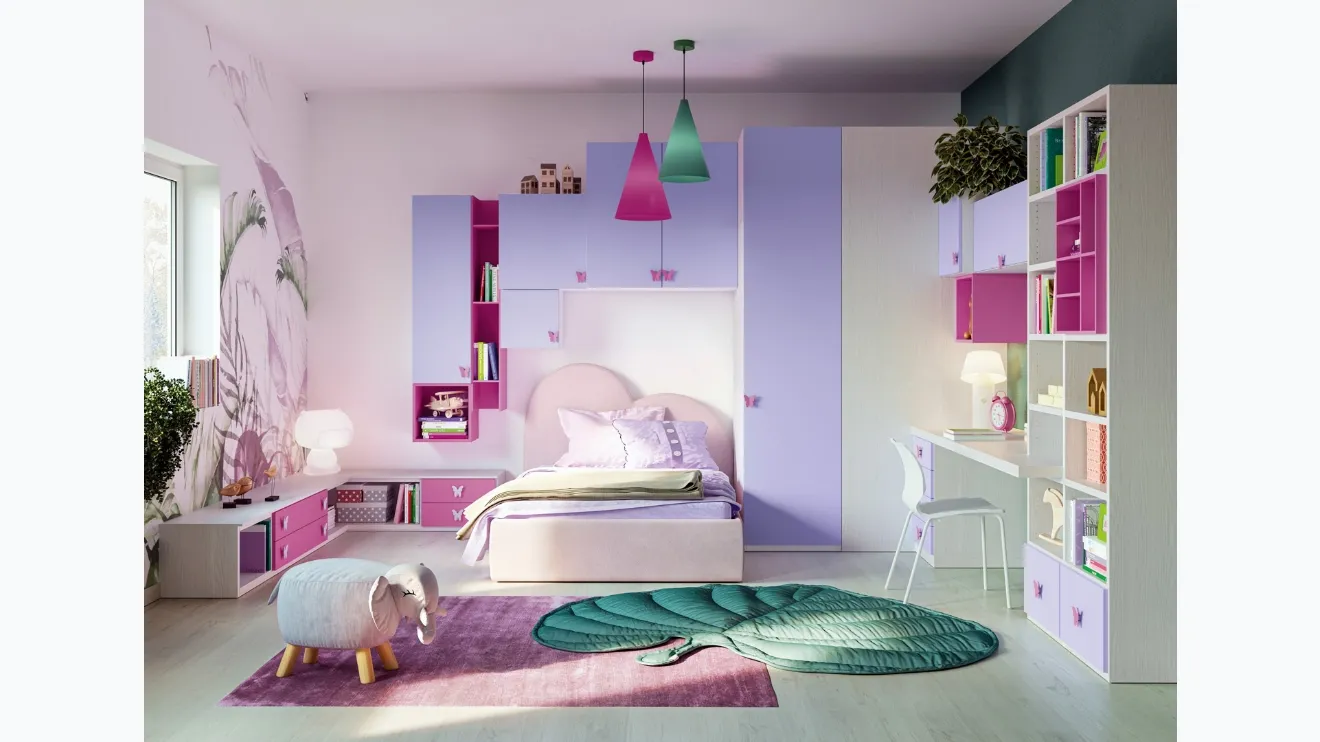 Con questa cameretta Job CM 338 Giessegi, tra le soluzioni a ponte, potrai allestire stanze moderne per bambine.