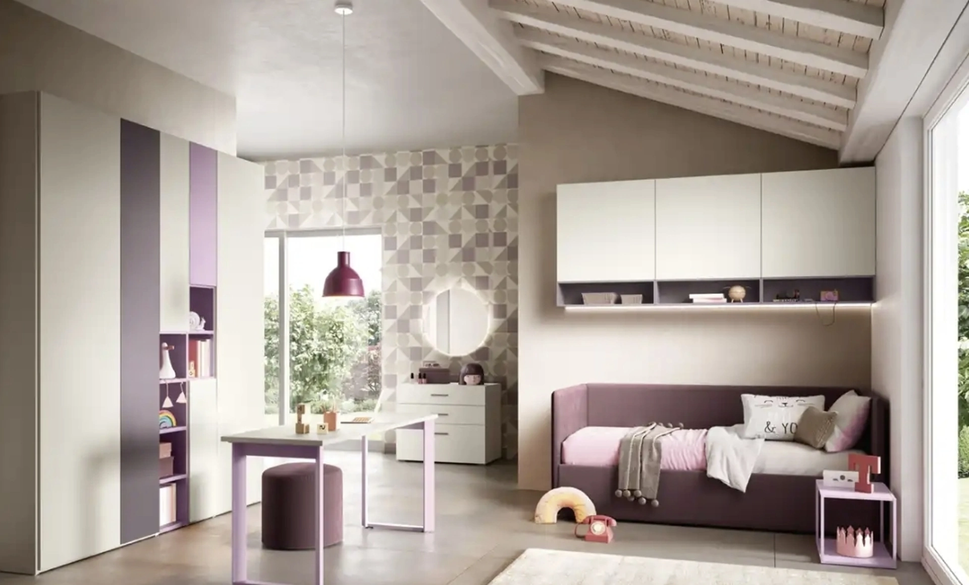 Con questa cameretta K106 Moretti Compact Camerette, tra le soluzioni componibili, potrai progettare stanze moderne per bambine.