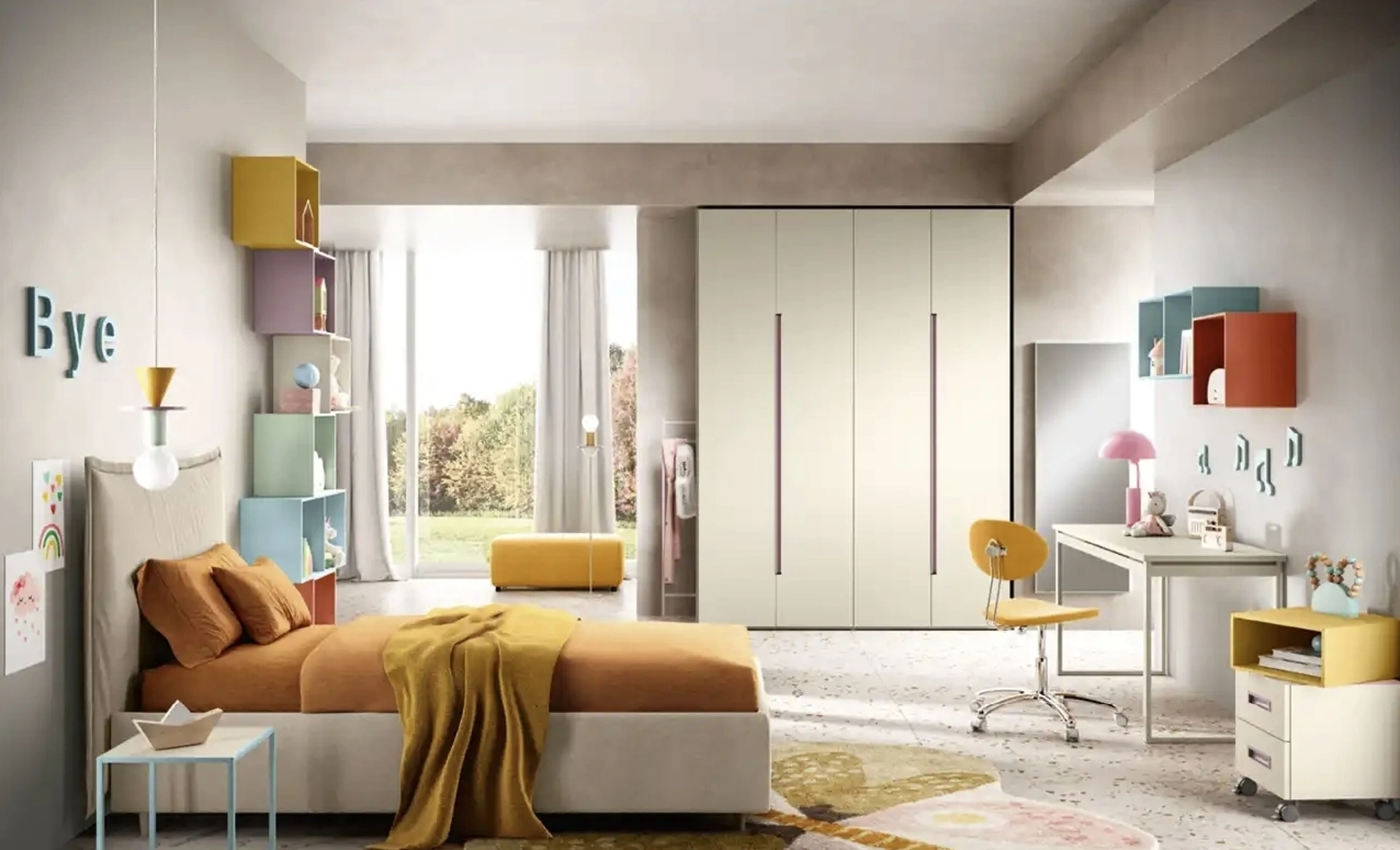 Con questa cameretta K107 Moretti Compact Camerette, tra le soluzioni componibili, potrai arredare stanze moderne per bambini.