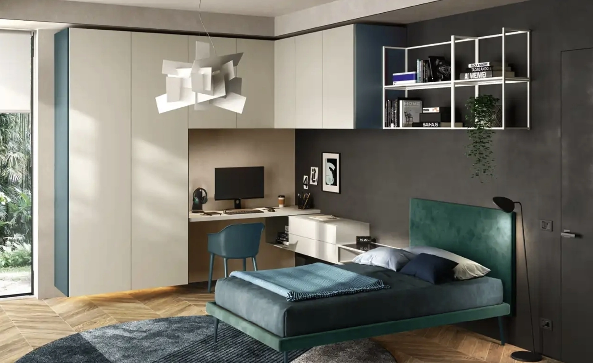 Con questa cameretta Y111 Moretti Compact Camerette, tra le soluzioni a ponte, potrai arredare stanze moderne per ragazzi.
