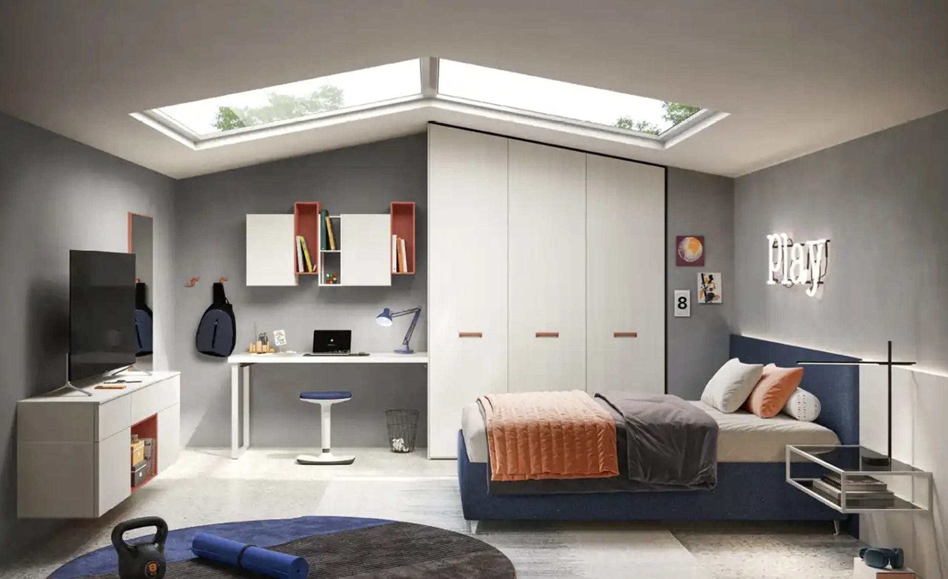 Questa soluzione in melaminico ultima perfettamente le qualità pratiche e l'estetica della camaretta, poiché è capace di unire funzionalità ed ergonomia. Nell'arredamento della stanza dei giovani affidati a noi: nel nostro punto vendita proponiamo tutte le più belle composizioni moderne per la loro camera. Se cerchi spunti creativi per decorare perfettamente la stanza dei tuoi figli, ti proponiamo la Cameretta Y122 di Moretti Compact Camerette con finitura in melaminico. Moretti Compact Camerette offre una ricca gamma di elementi accessori da comporre su misura: troverai letto, armadio o cabina armadio, scrivania, sedie e librerie.