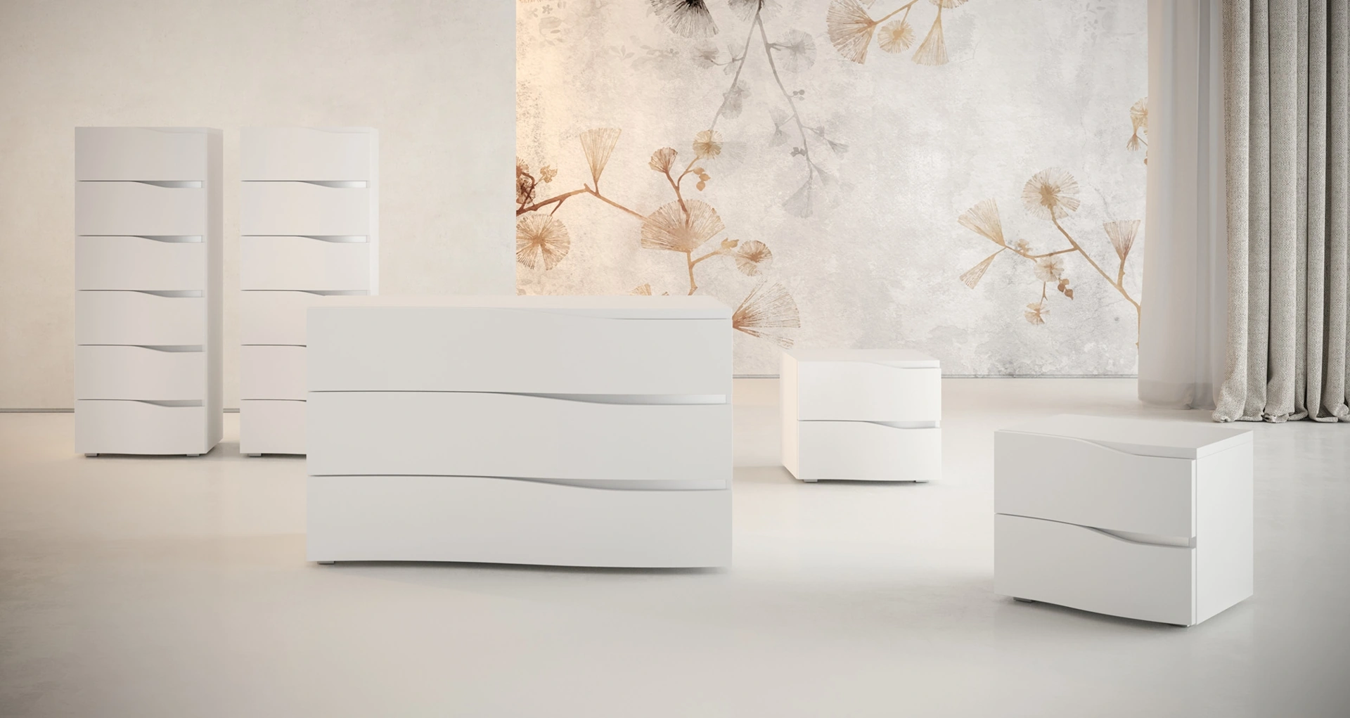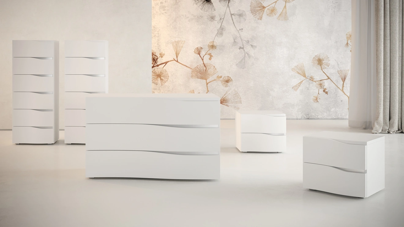 Vuoi progettare la zona notte con Comodini e mobili con cassetti di Giessegi? Ecco qui il modello Damasco Gruppo Notte in laccato opaco per spazi moderni.