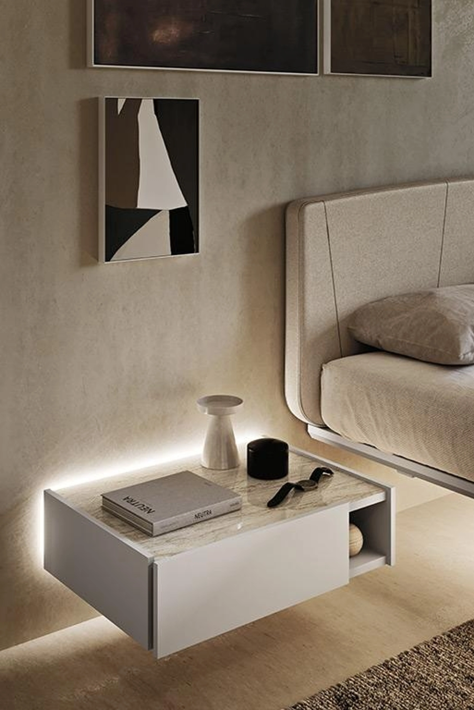 Ti domandi in che modo abbinare letti, armadi e comò? Con il modello di Mobilgam presente in foto avrai un pezzo di arredamento perfetto per uno spazio dai richiami moderni. Materiali di qualità e lavorazioni eccellenti per il Comodino sospeso Smart di Mobilgam in in laccato opaco, disponibile in showroom insieme alle altre varie offerte del brand, per fare della camera da letto un luogo che ricalchi la tua personalità.