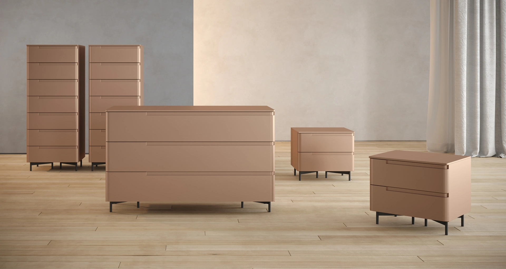Una ricca gamma di cassettiere Giessegi: i comodini moderni in laccato opaco, come Torino Gruppo Notte, sono tra le proposte più belle.