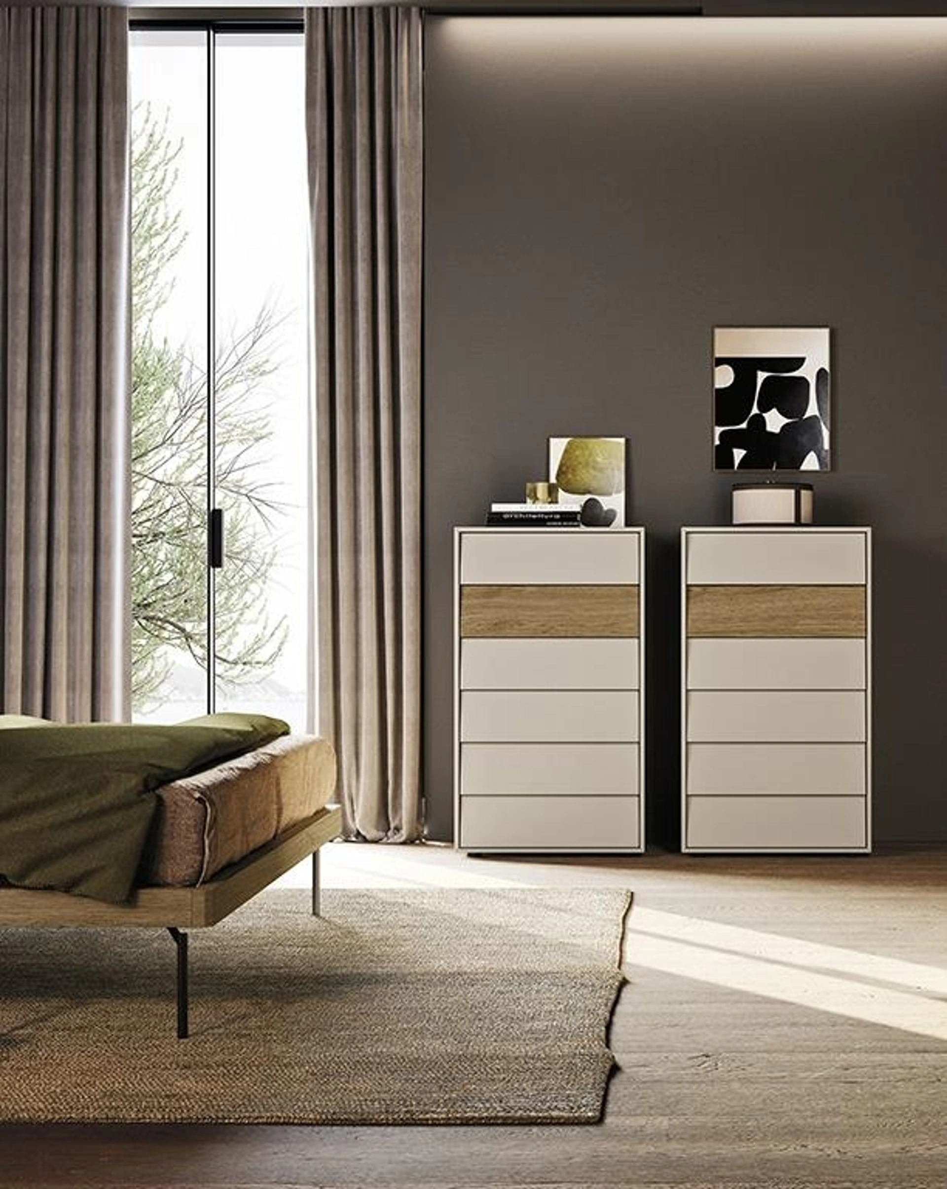 La zona del riposo comprende anche i Comodini: arredi contenitivi utilissimi che offrono l'opportunità di ordinare piccole cose e avere a disposizione superfici per appoggiare multiuso. Valorizza i tuoi interni scegliendo composizioni di mobili abbinati o ricrea eleganti abbinamenti di stile e tonalità grazie al catalogo di mobili e oggetti accessori per la zona del riposo che proponiamo, come il modello in laccato opaco presente in foto, anche realizzabili su misura per te. Cassettiera Vela di Mobilgam: contattaci e ottieni informazioni sulle nostre soluzioni arredative e arreda la camera come l'hai sempre immaginata.