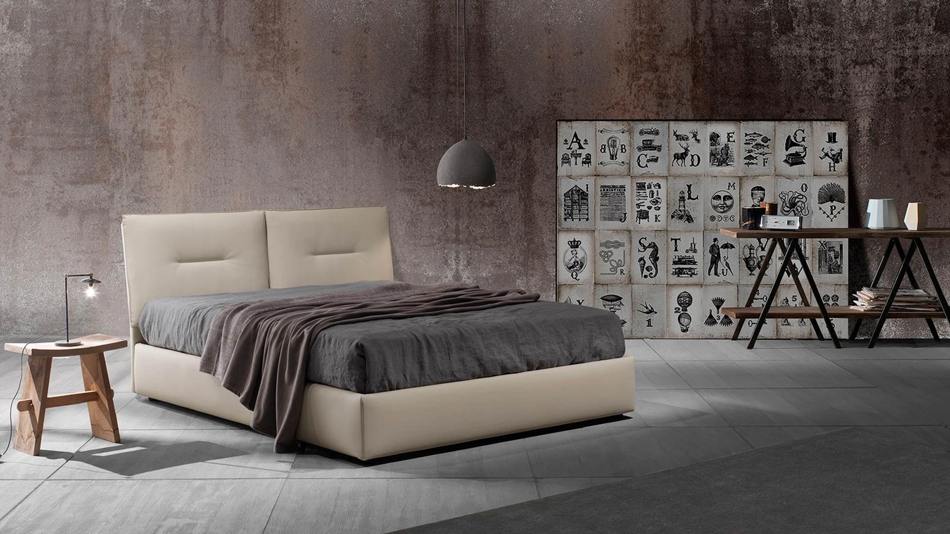 Se vuoi letti matrimoniali imbottiti, eccoti il modello Zoè Uno in tessuto per arricchire la zona notte.
