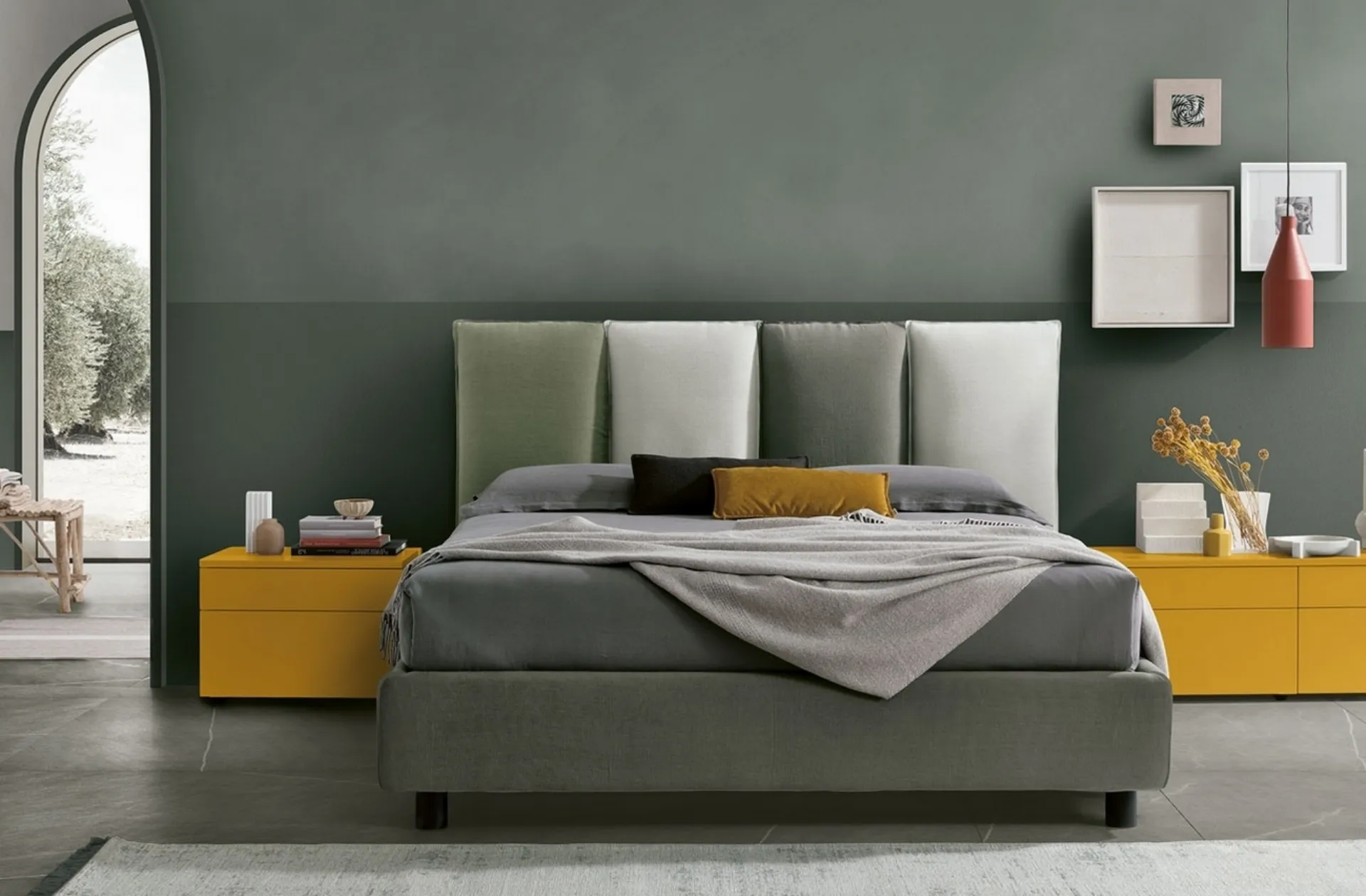 Se desideri letti matrimoniali imbottiti, ecco qui il modello Poker in tessuto per arricchire la zona notte.