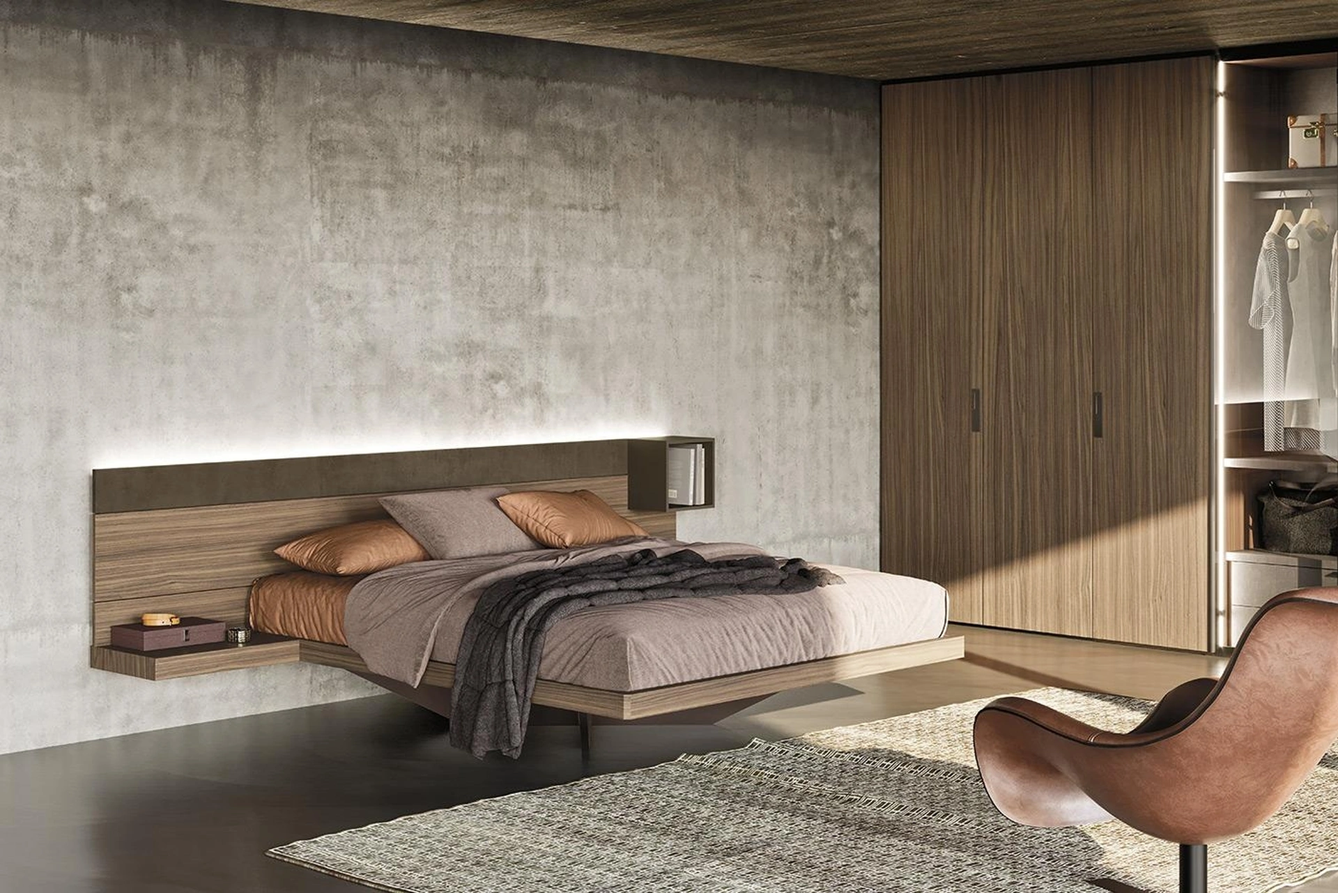 Per ultimare al meglio l'arredo della tua zona del riposo è indispensabile valutare gli accostamenti del letto con armadi e comodini, elementi accessori e quant'altro: se vuoi mobili design, il modello nell'immagine fa per te.