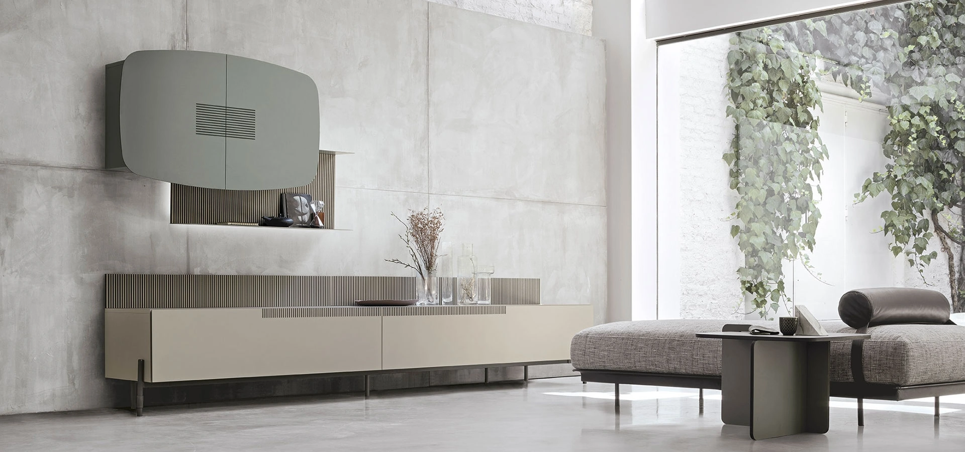 Cerchi un mobile per la TV? Ecco a te il modello TIME UNIT TI 111 di Tomasella in laccato opaco, ideale per spazi design.