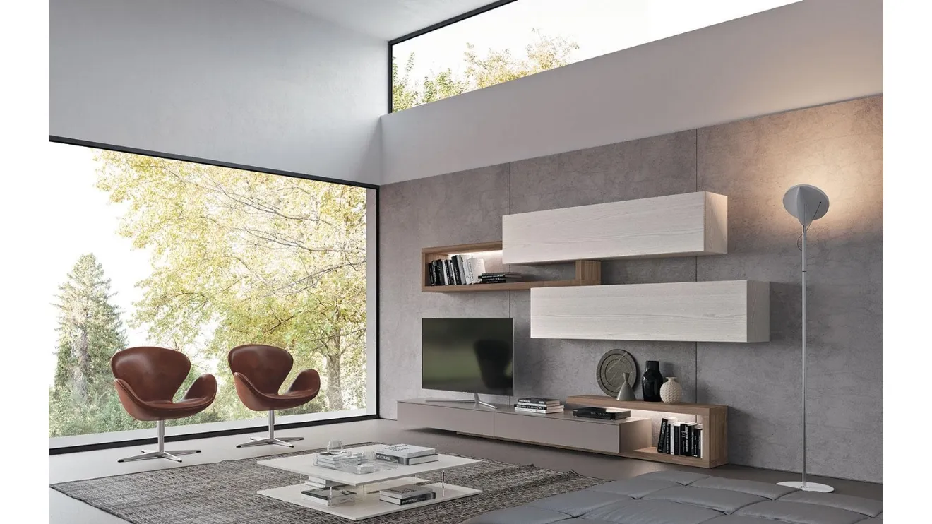 Se vuoi completare un soggiorno operativo e pratico dalle linee moderne, ecco a te la parete attrezzata Composizione Horizon 930 Mobilgam.