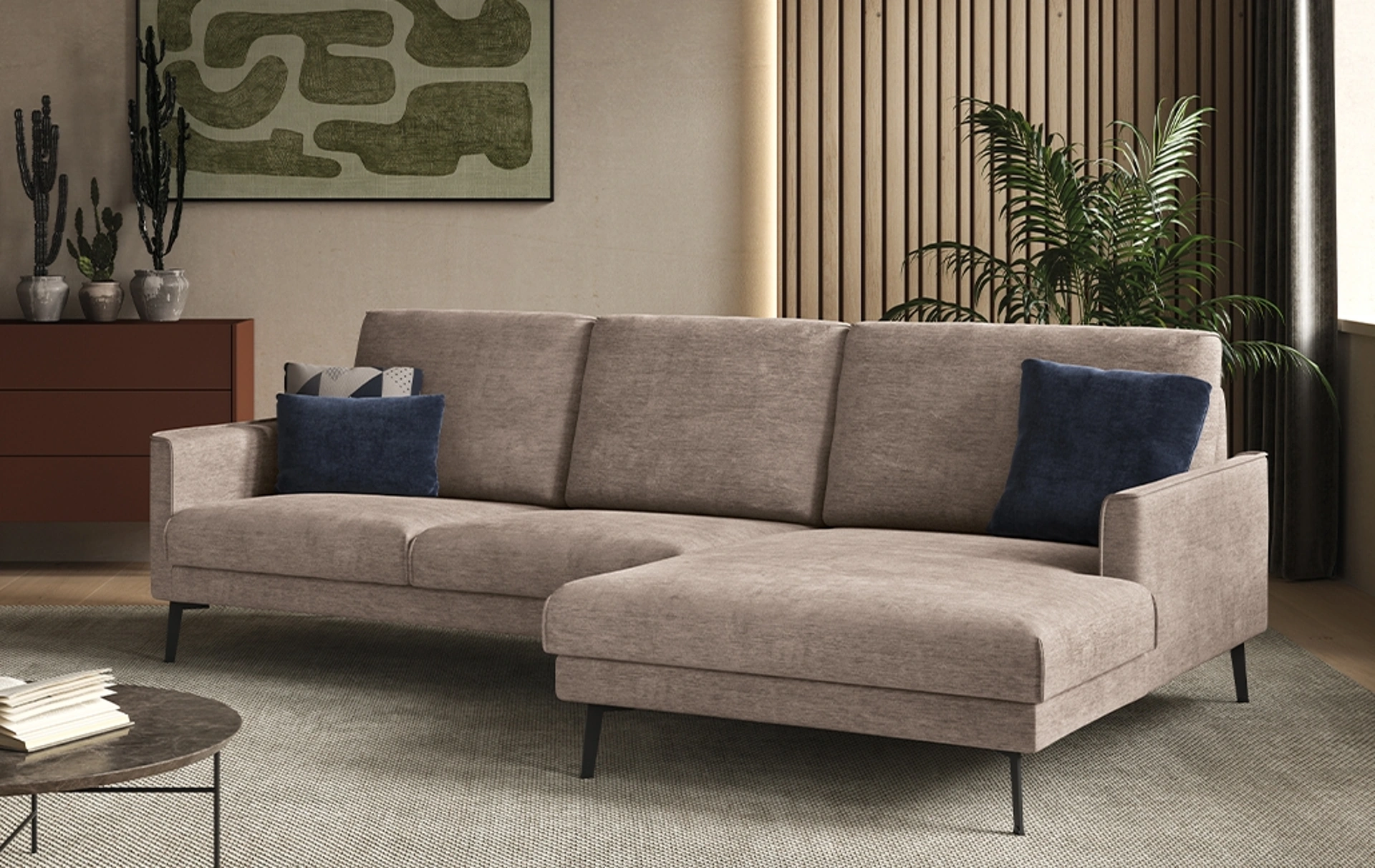 Con salotti e divani con penisola di Rigosalotti come il modello Kriss in tessuto, potrai completare il tuo progetto d'arredo.