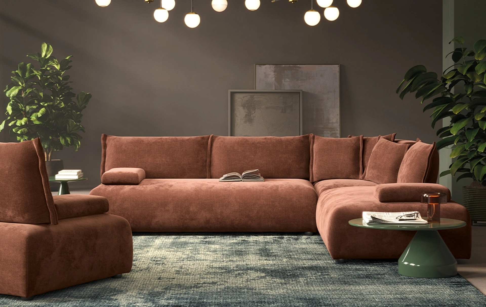 La linea di divani della firma in questione presenta tanti spunti originali per impreziosire il soggiorno in nome di praticità, comfort e stile. Il catalogo Rigosalotti presenta tanti spunti per impreziosire l'ambiente in nome di praticità e contenuto estetico, mettendo al centro il tuo comfort. I nostri Salotti sono pensati per essere abbinati a elementi accessori di ogni genere, come tavolini, abat jour e piantane o in combinazione con ulteriori divani in tessuto. Se desideri imbottiti ad angolo come il modello nella fotografia, caratterizzato dai volumi che invitano a trascorrere i tuoi momenti di relax.