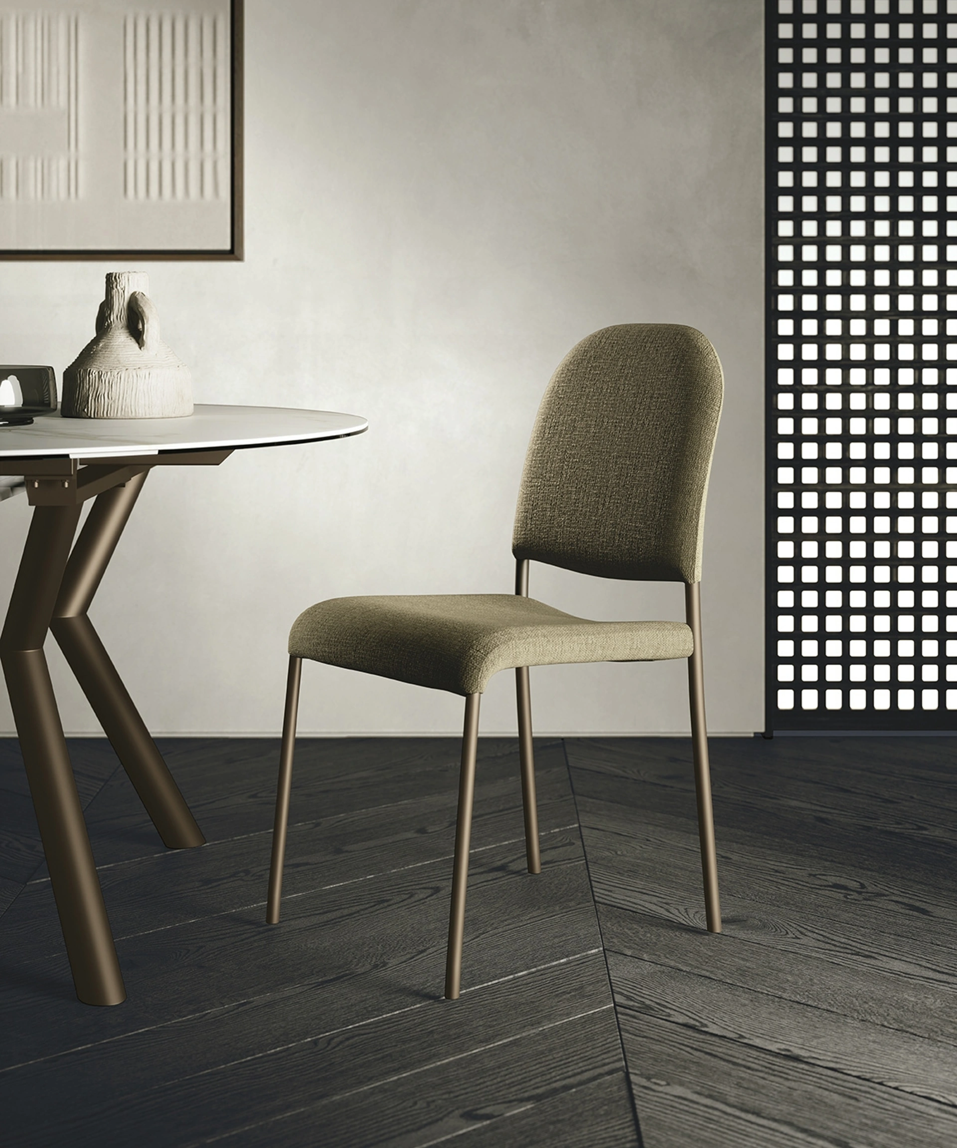 In negozio proponiamo esclusivi mobili e oggetti accessori, tra cui troverai sicuramente la soluzione che fa al caso tuo. Le sedute moderne, sia in legno che imbottite, sono arredi complessi, definiti da una scelta praticamente infinita di tonalità, forme e pattern. Una sedia in tessuto come quella qui presente arreda un living o una zona cucina di grande design, ultimando gli spazi valorizzandoli appieno. Tra le migliori marche disponibili nel nostro negozio di Arredamento Casa potrai trovare le Sedie fisse da pranzo più esclusive sul mercato. Oltre a rispondere a una funzione essenziale, questi pezzi di arredo possono enfatizzare un interno anche anonimo e privo di elementi accessori.